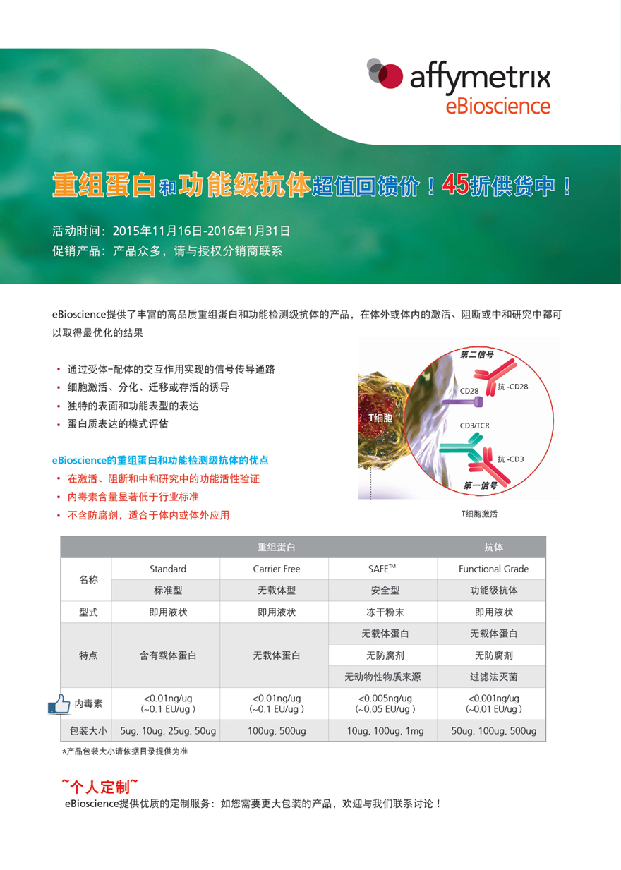ebioscience 重組蛋白和功能級別抗體低至4.5折促銷